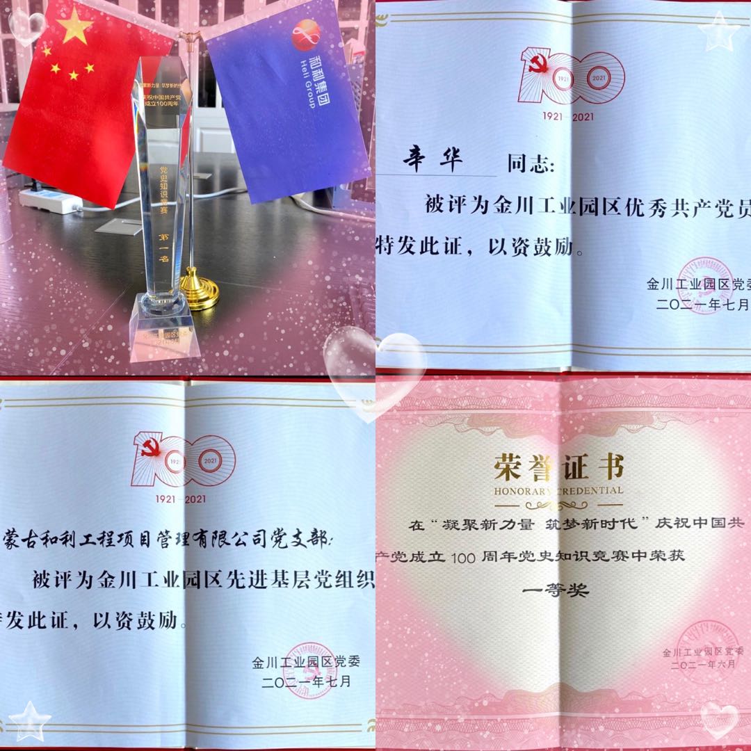 在金川黨委的正確領導下,和利黨支部全體黨員、入黨積極分子共同努力下,獲得金川工業(yè)園區(qū)舉辦的慶祝黨建100周年知識競賽第一名、優(yōu)秀共產黨員稱號,榮獲“先進基層黨組織”等榮譽。